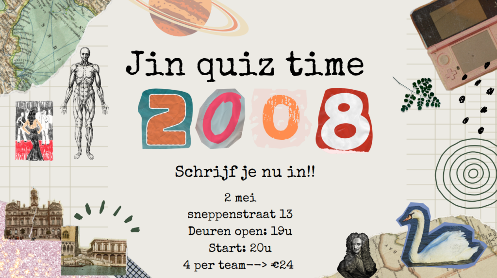 Klaar voor een topavond vol plezier en gezonde competitie? Op 2 mei organiseren wij onze Jin Quiz en dit wil je écht niet missen! Vorm een team met vrienden, familie of mede-leiding en ga de uitdaging aan. Verwacht een gezellige sfeer, leuke vragen en vooral een geweldige avond samen.